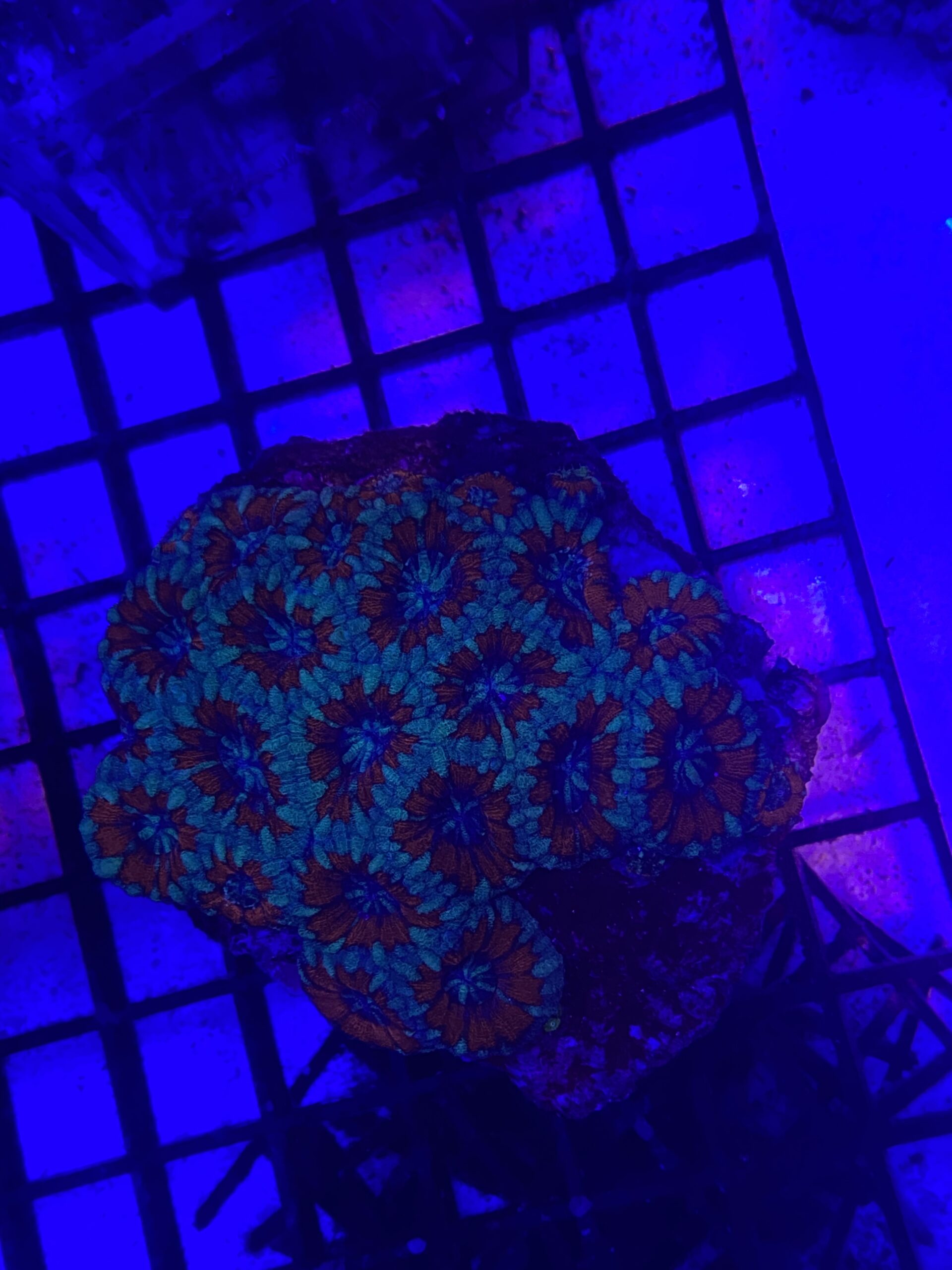 El Acanthastrea lordhowensis «AcanLord Polyp S» es un coral LPS de pólipo grande y carnoso, muy buscado por su increíble variedad de colores que van del rojo y verde al naranja, púrpura y azul. Es originario del Indo-Pacífico y se adapta perfectamente a zonas bajas o medias del acuario, con luz baja a moderada y corriente suave. Requiere parámetros estables como salinidad 1.025, calcio entre 400 y 450 ppm, alcalinidad 8–12 dKH y magnesio en torno a 1300 ppm. Se alimenta por fotosíntesis, pero responde muy bien a alimentación dirigida con mysis, artemia o pellets para LPS unas 2 o 3 veces por semana. Es pacífico, pero durante la noche puede extender tentáculos barrenderos, por lo que conviene dejarle espacio con otros corales. Ideal para acuaristas que buscan un coral vistoso, fácil de mantener y con presencia fuerte en el layout del reef.