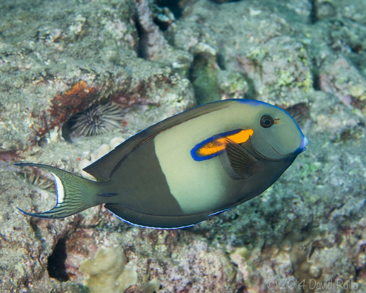El Acanthurus olivaceus, conocido comúnmente como cirujano naranja o cirujano oliváceo, es una especie de pez marino de la familia Acanthuridae, muy apreciado en el acuarismo por su elegancia y su distintiva franja anaranjada que recorre su cuerpo en la etapa juvenil. En su fase adulta presenta un tono más apagado, con matices grisáceos y azulados, conservando siempre su porte robusto y activo. Es un pez resistente y de comportamiento generalmente pacífico, aunque puede mostrarse territorial con otros cirujanos. Requiere acuarios amplios, con buena oxigenación, roca viva y espacio suficiente para nadar. Su alimentación debe ser variada, basada principalmente en algas y vegetales, complementada con preparados específicos para herbívoros marinos. Es una excelente opción para acuarios marinos medianos o grandes, donde destaca por su dinamismo y coloración cambiante.