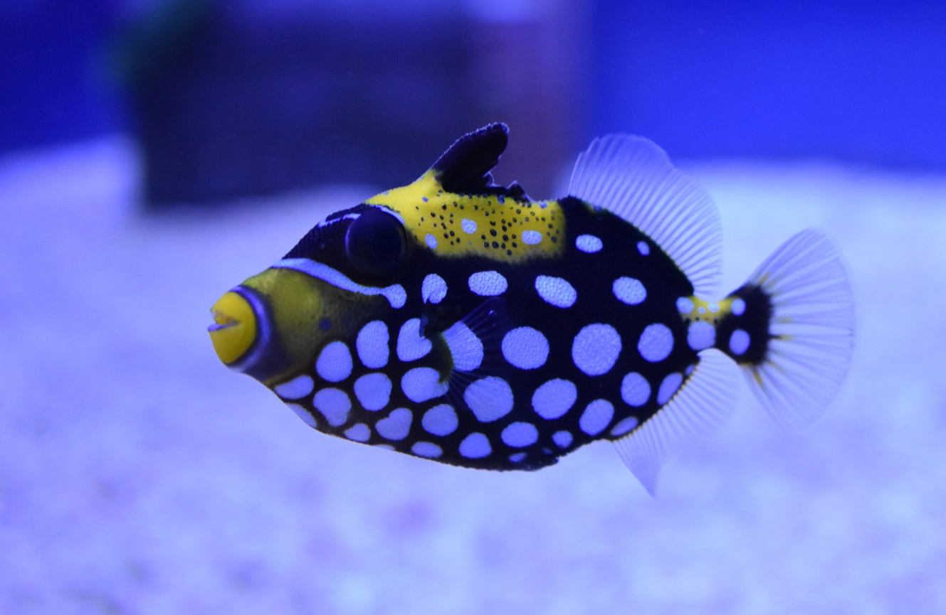 El Balistoides niger, conocido como pez ballesta payaso o triggerfish payaso, es una especie marina imponente y llamativa perteneciente a la familia Balistidae. Su cuerpo es robusto, de forma ovalada y comprimida lateralmente, con una coloración que varía del gris oscuro al negro profundo, a menudo con reflejos azulados o verdosos según la iluminación. Es un pez inteligente, curioso y territorial, especialmente a medida que crece, por lo que se recomienda mantenerlo en acuarios grandes, con abundante roca viva y refugios donde pueda establecer su territorio. Puede alcanzar tamaños considerables y su comportamiento es dominante, por lo que debe convivir solo con especies de porte similar o más robustas. Su dieta es omnívora e incluye crustáceos, moluscos, algas y alimentos preparados de alta calidad. Es una especie ideal para acuaristas experimentados que buscan un ejemplar fuerte, resistente y de gran presencia visual en el acuario.