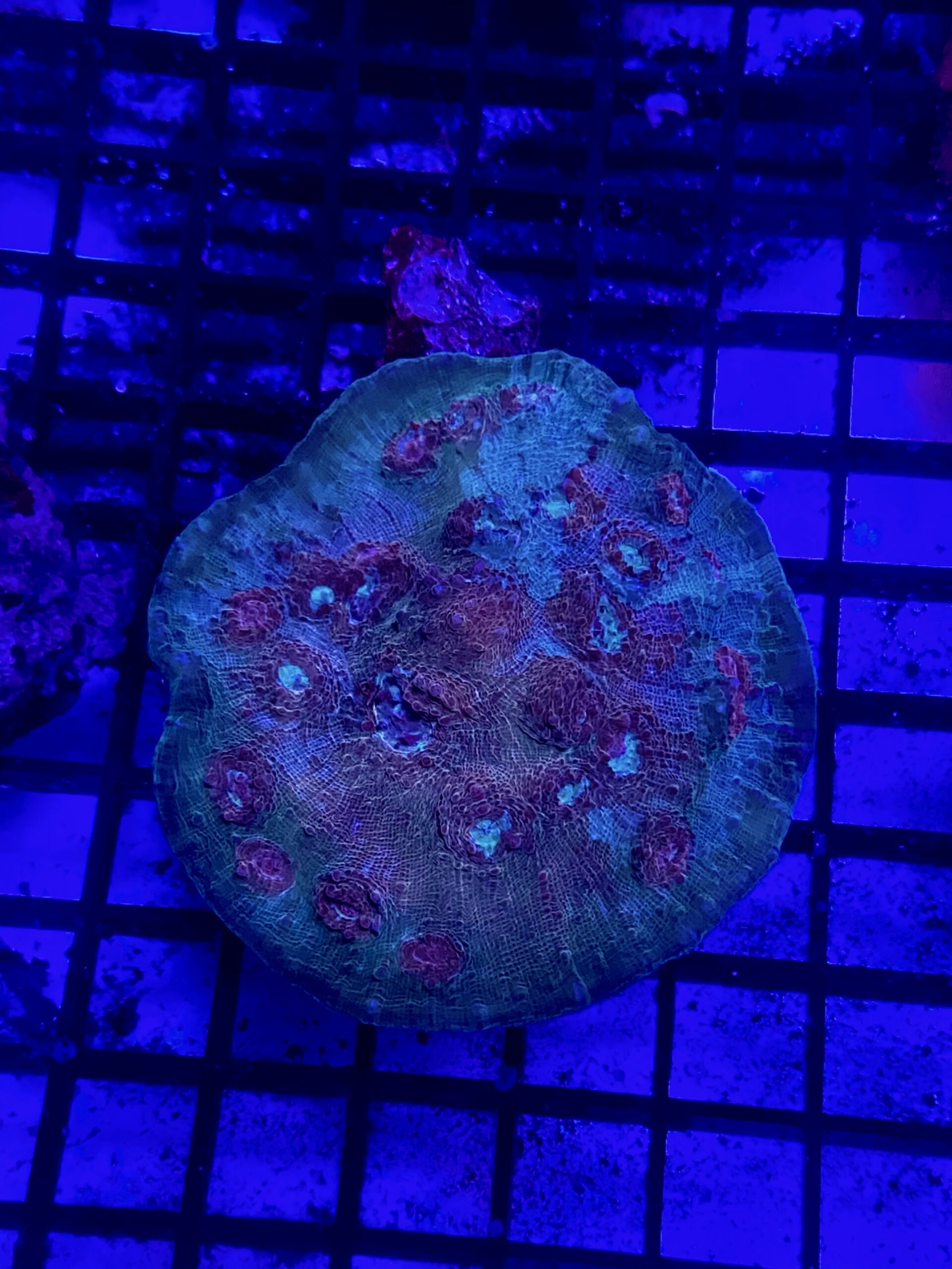 El Chalice Echinopora Rough Coloured Eyes es un coral LPS de gran atractivo, reconocido por su superficie texturizada y sus característicos “ojos” de colores contrastantes que resaltan intensamente bajo iluminación actínica. Su morfología de placas irregulares con crecimiento en forma de láminas o costras lo convierte en una pieza muy decorativa, capaz de cubrir rocas y crear estructuras llamativas dentro del acuario. Es un coral relativamente resistente, que se adapta bien a iluminación moderada y a un flujo de agua suave a intermedio, evitando corrientes demasiado directas que puedan dañar su delicado tejido. Aunque se nutre principalmente de la fotosíntesis de sus zooxantelas, responde muy bien a la alimentación con fitoplancton, zooplancton y preparados específicos para corales LPS, lo que favorece un crecimiento saludable y realza sus colores. Por su aspecto único y su capacidad de aportar diversidad visual, el Chalice Echinopora Rough Coloured Eyes es una opción ideal para quienes buscan un coral llamativo y poco común en sus arrecifes.