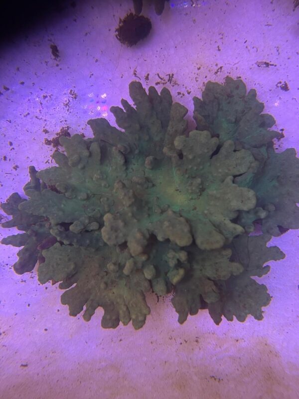 Con sus formas ramificadas y su intenso tono verde, la Sinularia Dura Green es un coral blando que aporta estructura y elegancia al acuario. Robusto, adaptable y de bajo mantenimiento, es ideal para quienes buscan dar profundidad y un aspecto natural a su paisaje marino.